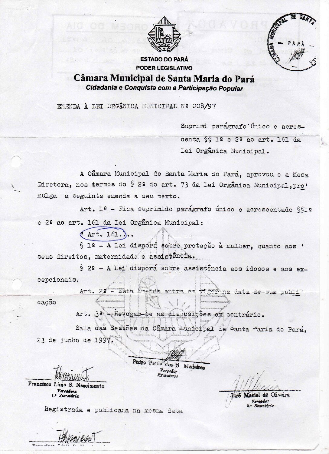 Emenda a Lei Orgânica 008.1997